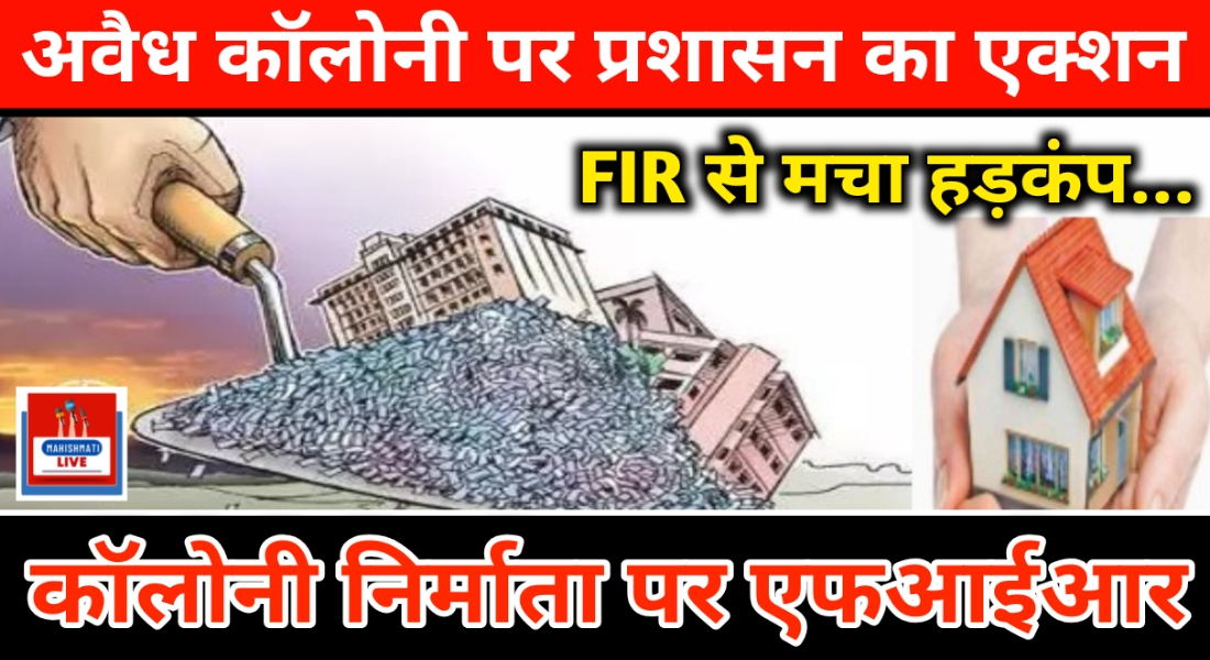 मंडला। जिले में अवैध कॉलोनी निर्माण के खिलाफ राजस्व एवं नगर प्रशासन ने सख्त रुख अपनाते हुए बड़ी कार्रवाई की है। तहसील महाराजपुर अंतर्गत बिना अनुमति किए जा रहे प्लॉटिंग और निर्माण कार्य पर प्रशासन ने एफआईआर दर्ज कराई है।
