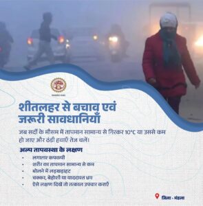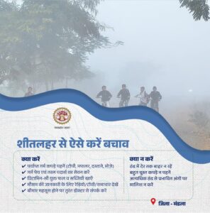 मुख्य चिकित्सा एवं स्वास्थ्य अधिकारी डॉ. डी.जे. मोहंती ने बताया कि शीतलहर से होने वाली समस्याओं से बचाव कर इस मौसम का सुरक्षित सामना किया जा सकता है। जब ठंडी हवाएं तेज़ी से चलने लगती हैं और तापमान में अचानक गिरावट आती है, तो इसे शीतलहर कहा जाता है। सामान्यतः जब न्यूनतम तापमान 10 डिग्री सेल्सियस से गिरकर 4–5 डिग्री या उससे नीचे चला जाता है, तब शीतलहर की स्थिति बनती है।