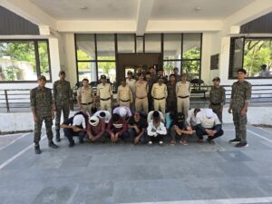 जंगल में चल रहे जुआ फड़ पर बड़ी कार्रवाई: 14 आरोपी गिरफ्तार, ₹11.50 लाख की संपत्ति जब्त
