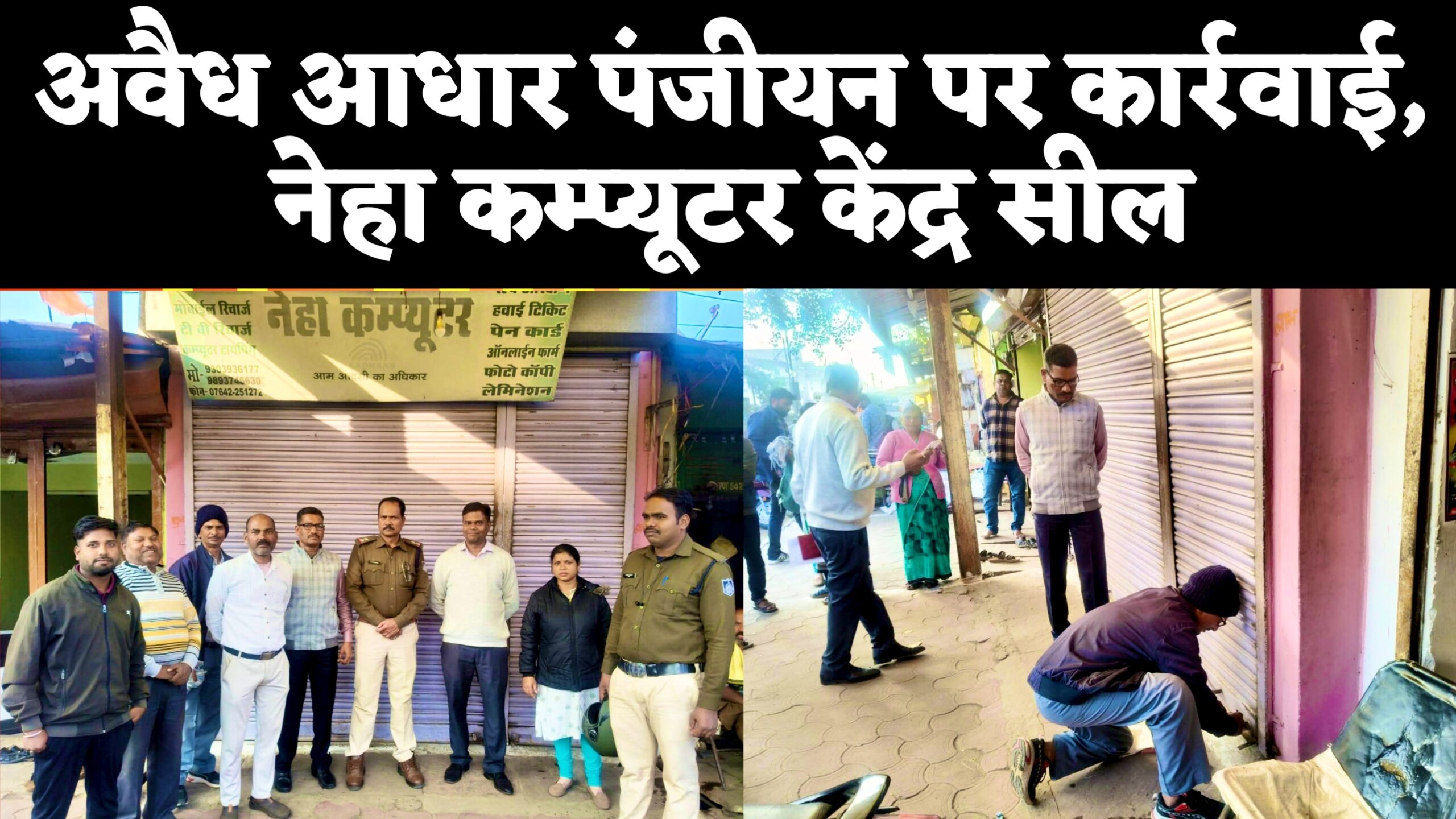अवैध आधार पंजीयन पर कार्रवाई, नेहा कम्प्यूटर केंद्र सील